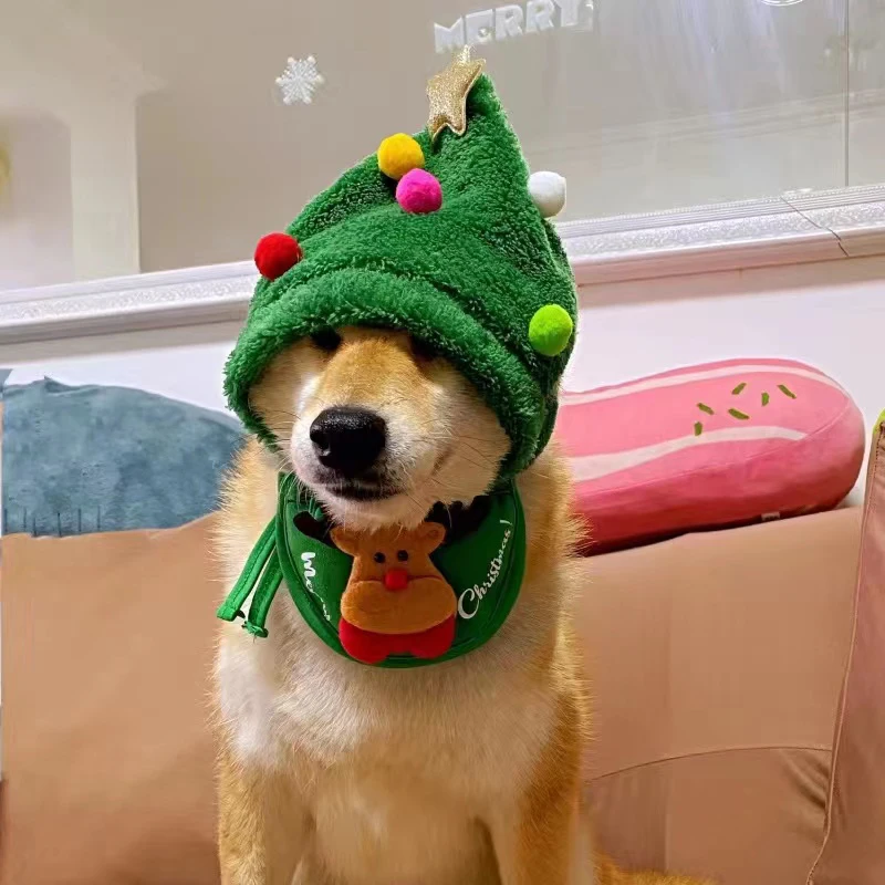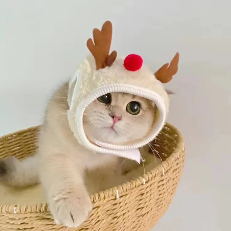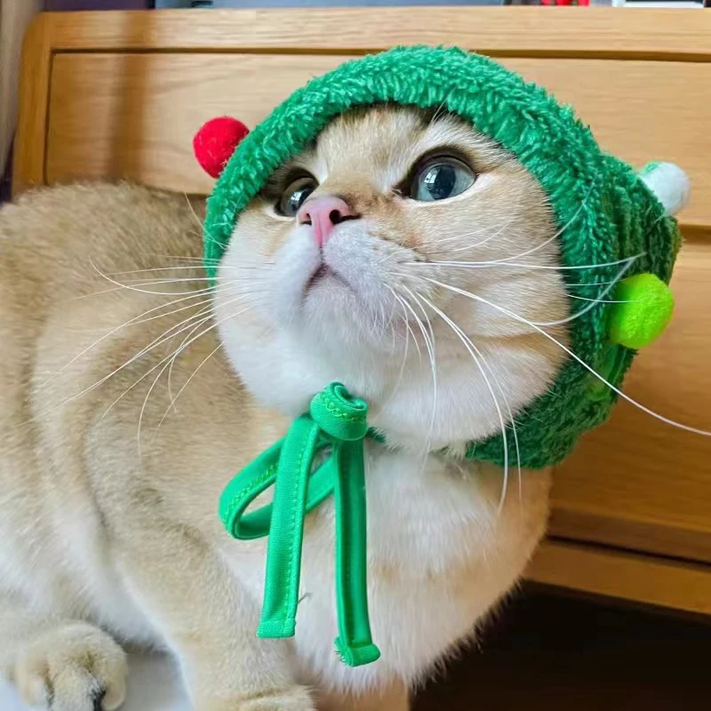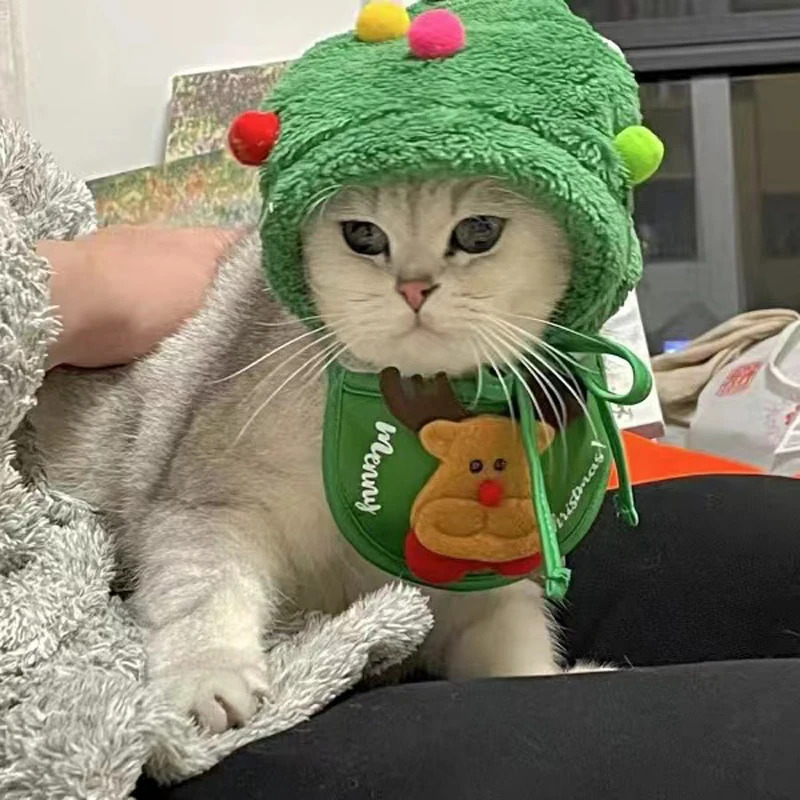 Christmas Cat Hat Funny Santa Party Pets Cosplay Outfit for Small Medium Dogs Cute Kitten Bibs Puppy Xmas Costume Headwear