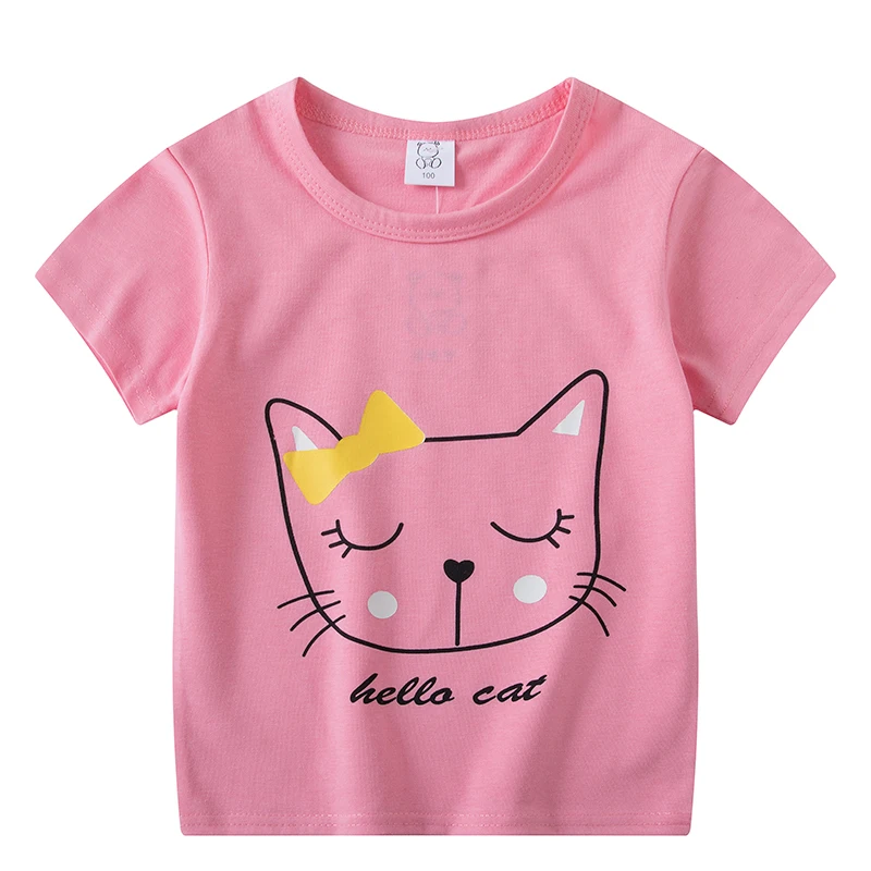 Christmas Boys Girls Short Sleeves T-Shirts Children's Tshirt Pink Cat T Shirt Baby Girl Tops Kids Tees Girls Tops